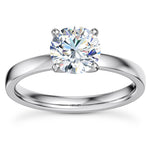 This classic four-prong solitaire engagement ring features a 2.0 mm band with a rounded inside edge for increased comfort.